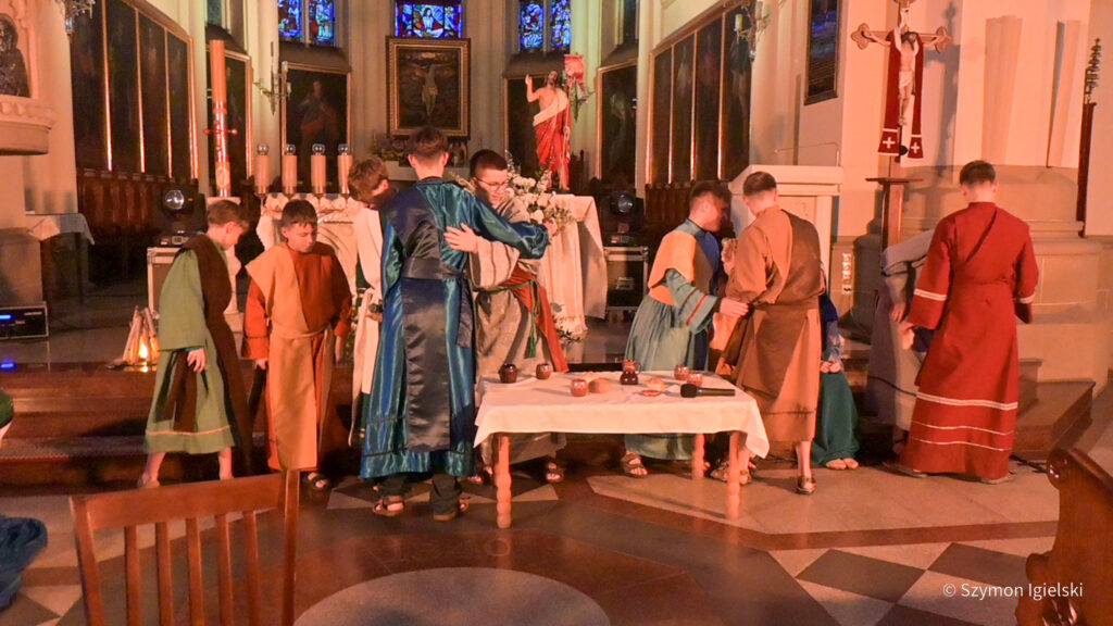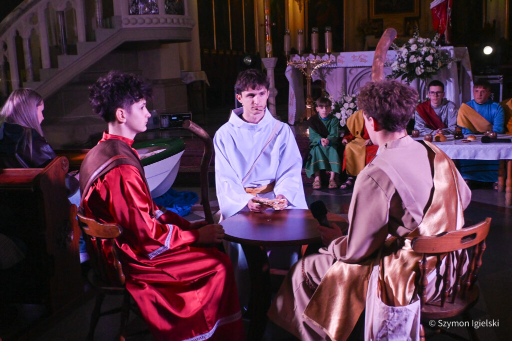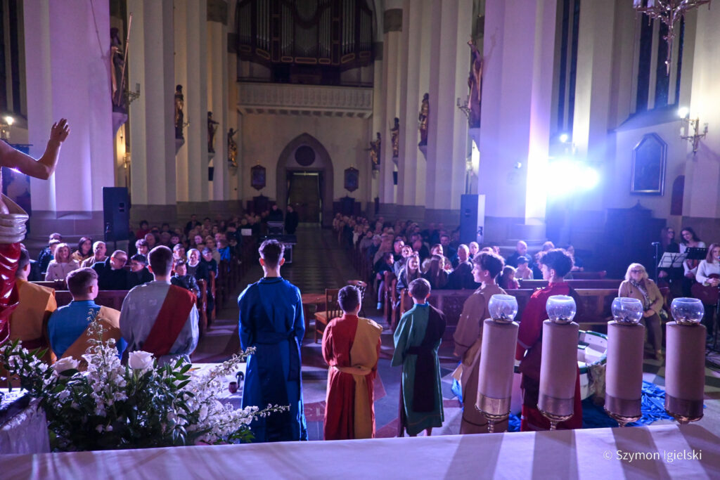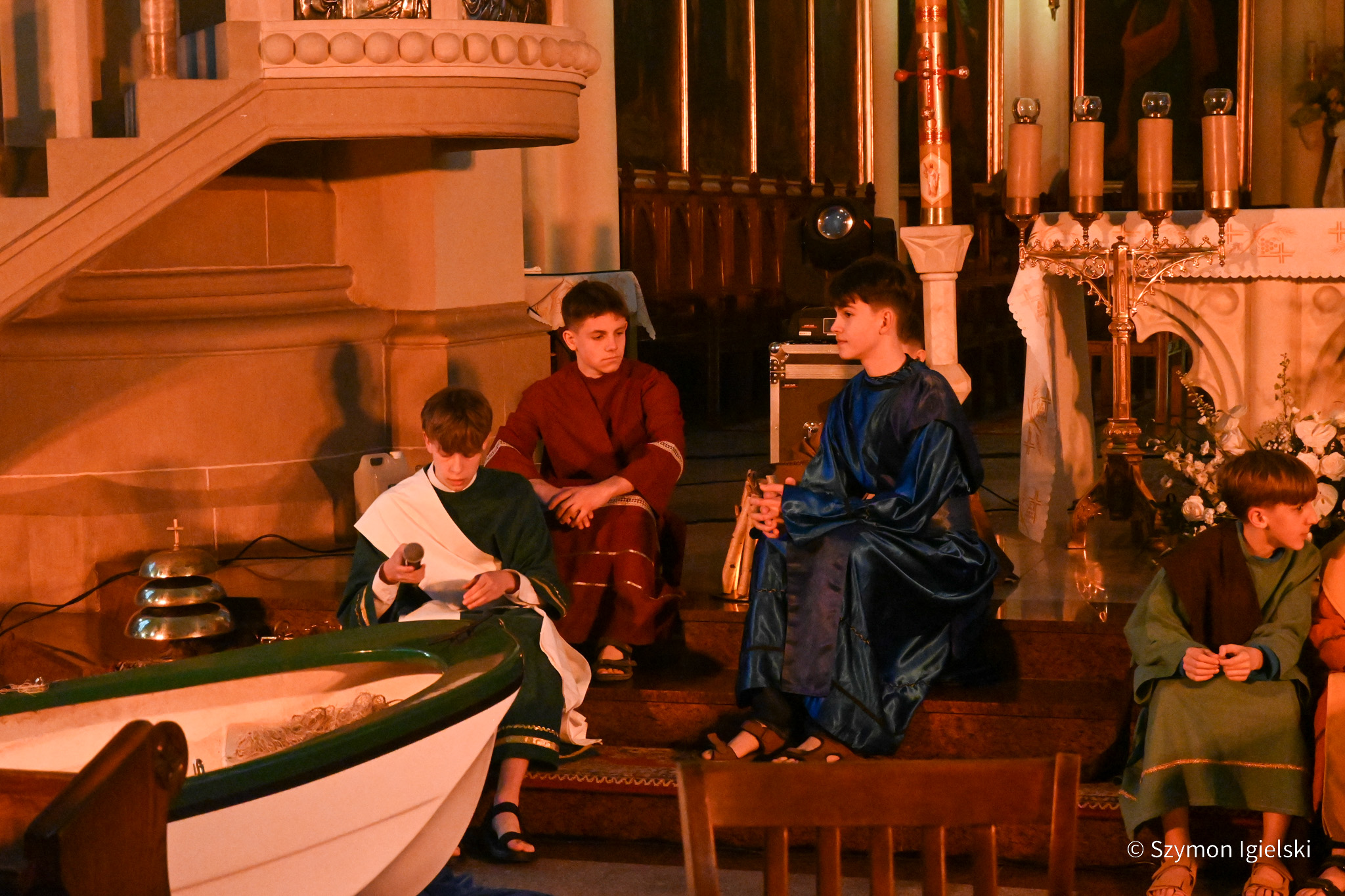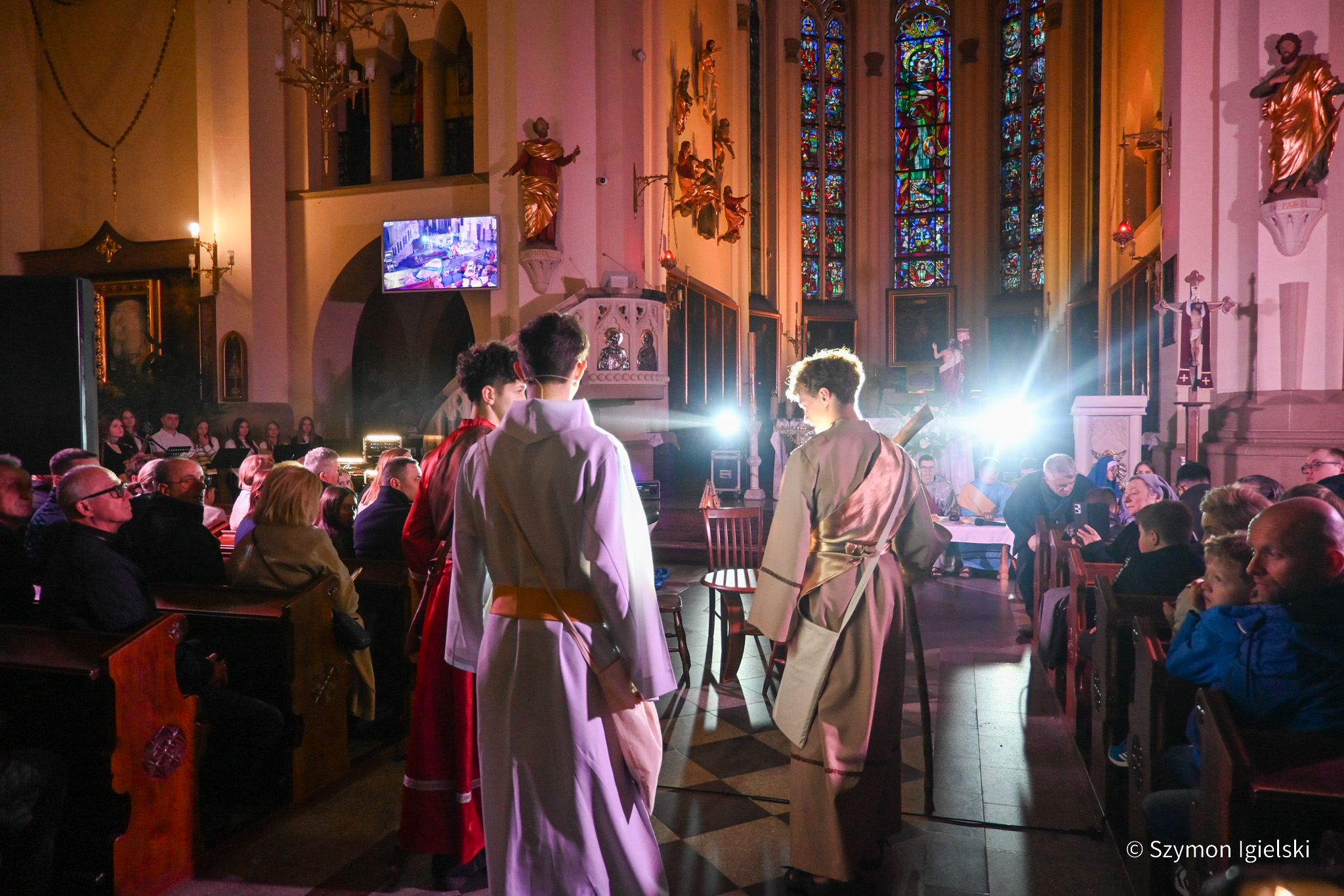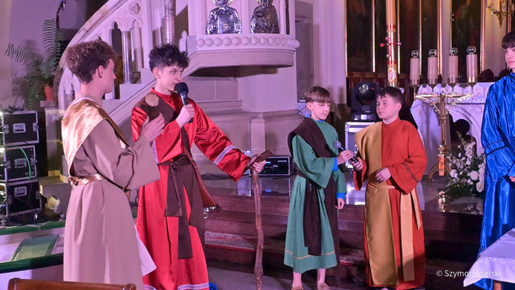 Wieczorem 12 kwietnia w niedzielę Bożego Miłosierdzia w naszej Bazylice w Grybowie odbył się piękny spektakl o Zmartwychwstaniu Pana Jezusa przygotowany przez młodzież z KSM – u i opiekunów. Na zakończenie ks. Proboszcz Prałat Ryszard pogratulował młodzieży talentu i entuzjazmu wiary i zachęcił do dalszego działania. Głos również zabrał ks. wikariusz Wiesław opiekun młodzieży w naszej parafii i koordynator przedstawienia. Młodzież wyraziła ogromną wdzięczność wszystkim przybyłym gościom a szczególnie Paniom koordynatorkom przedstawienia Barbarze Glińskiej i Bogusławie Nowak. Miedzy scenami biblijnymi pieśni śpiewał zespół: Echo Nieba.