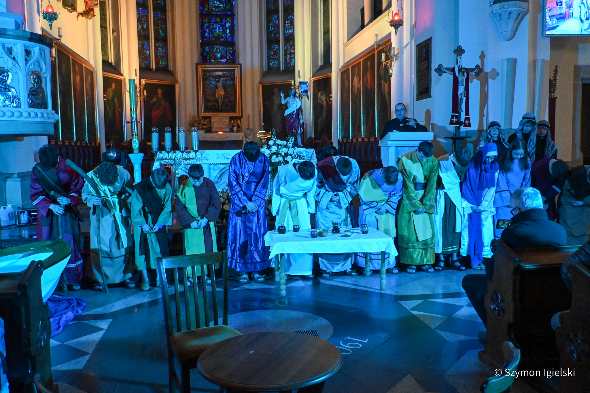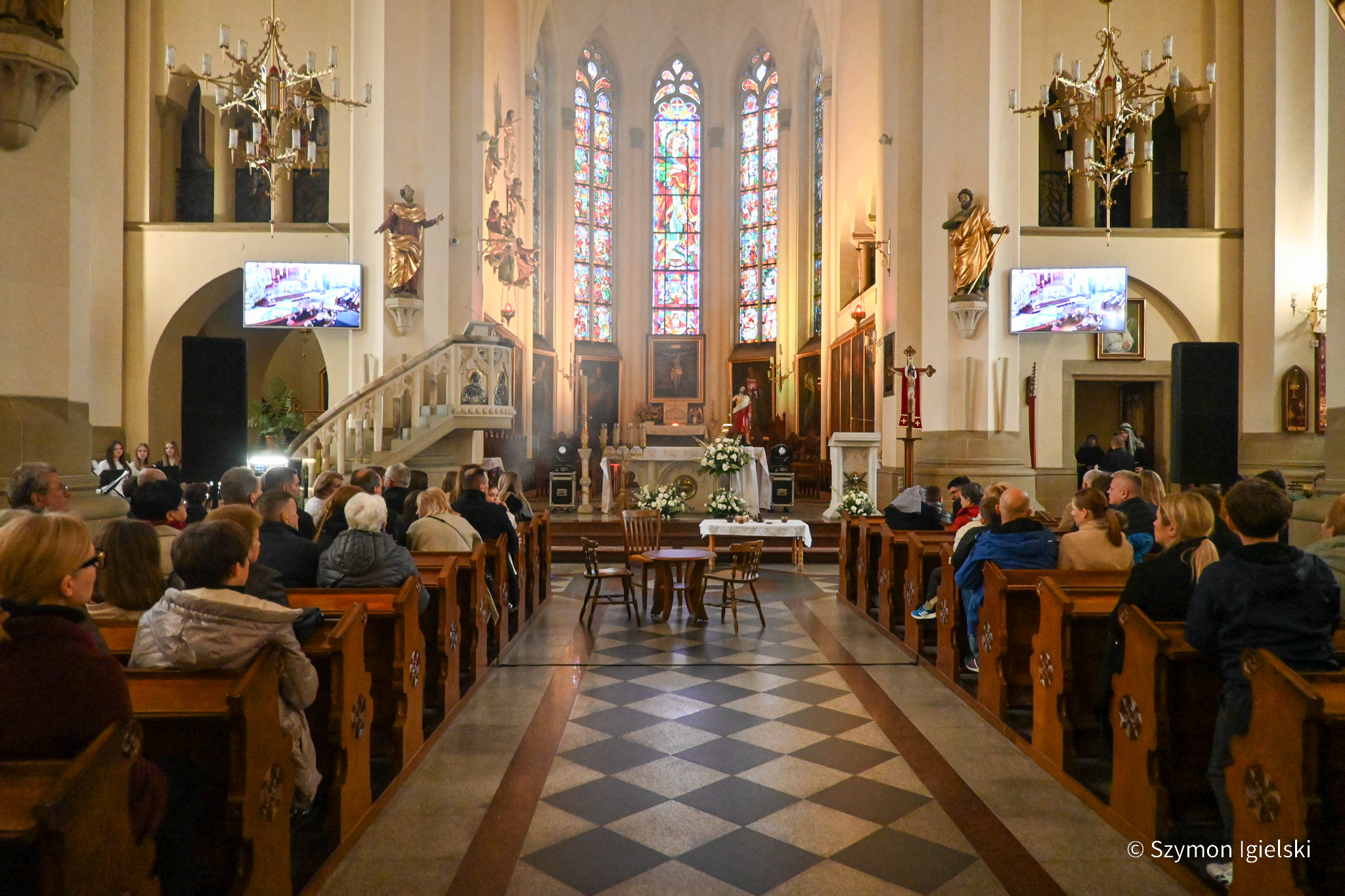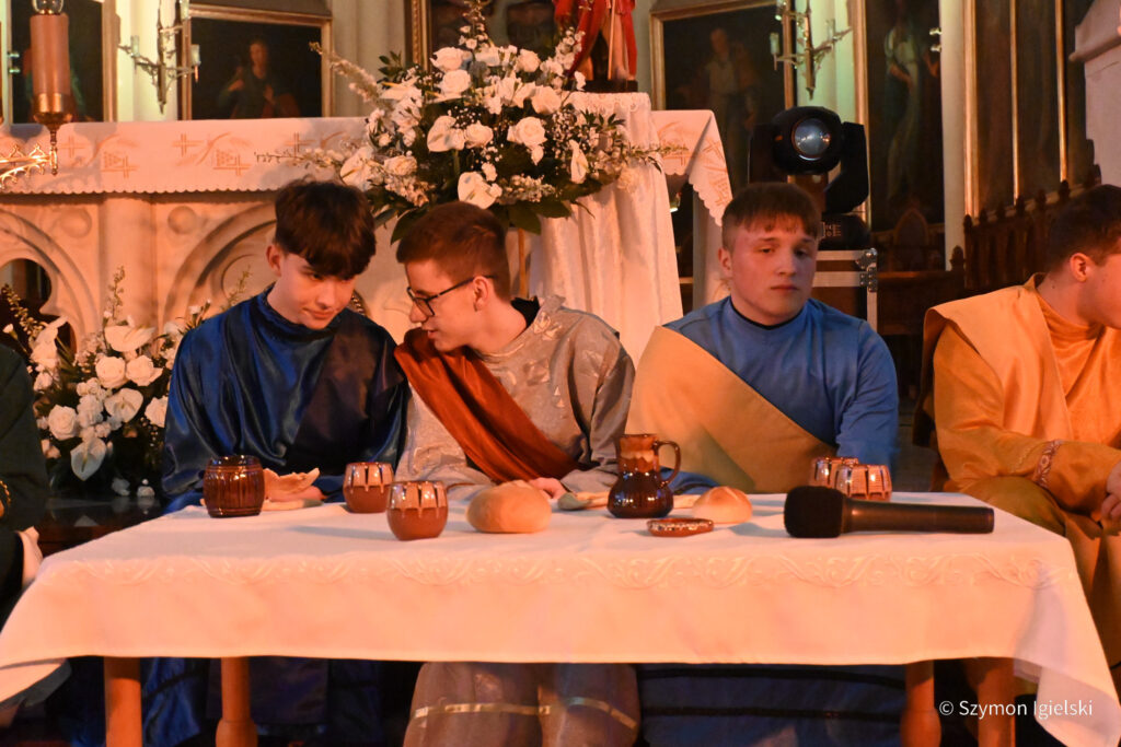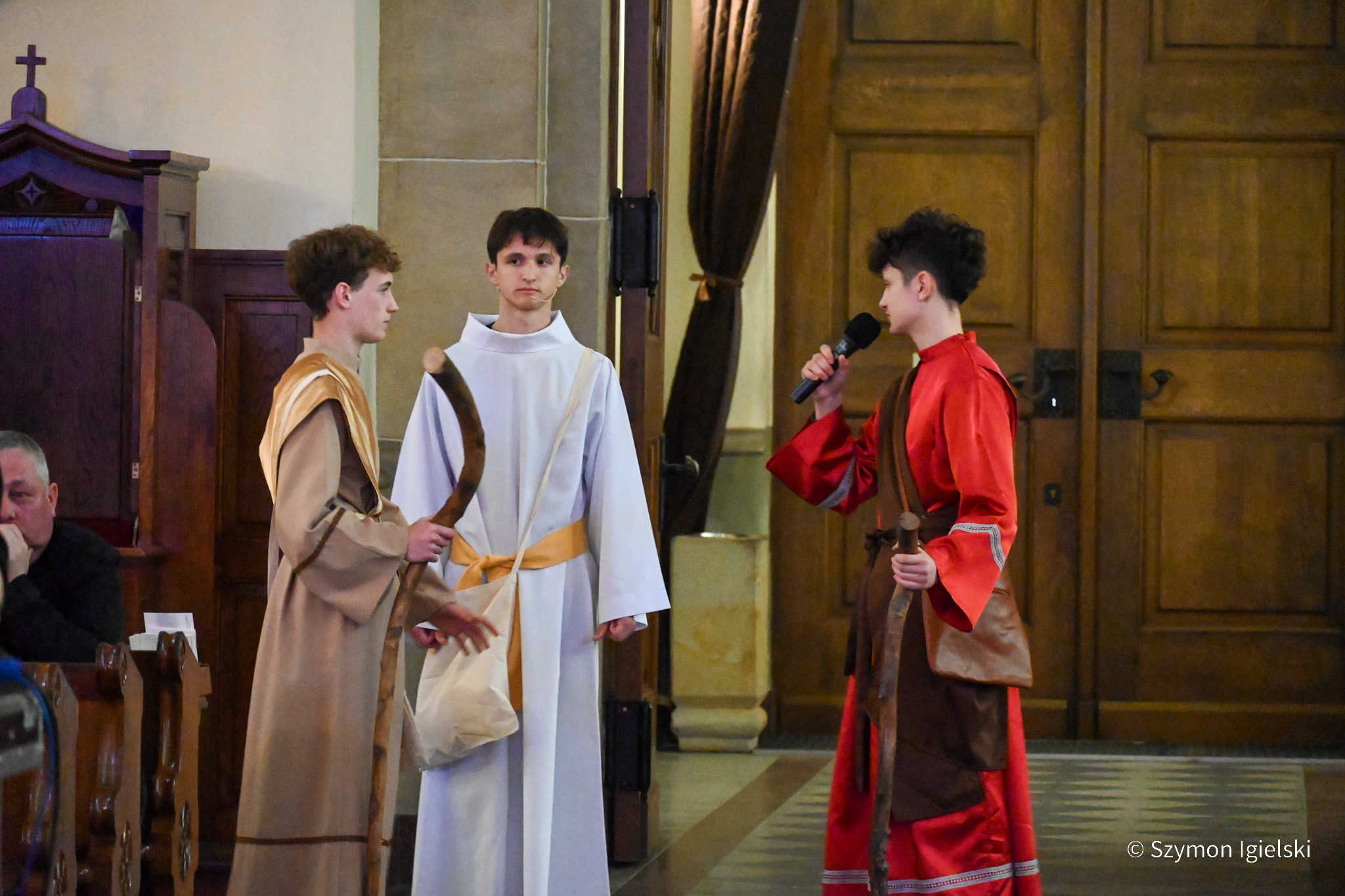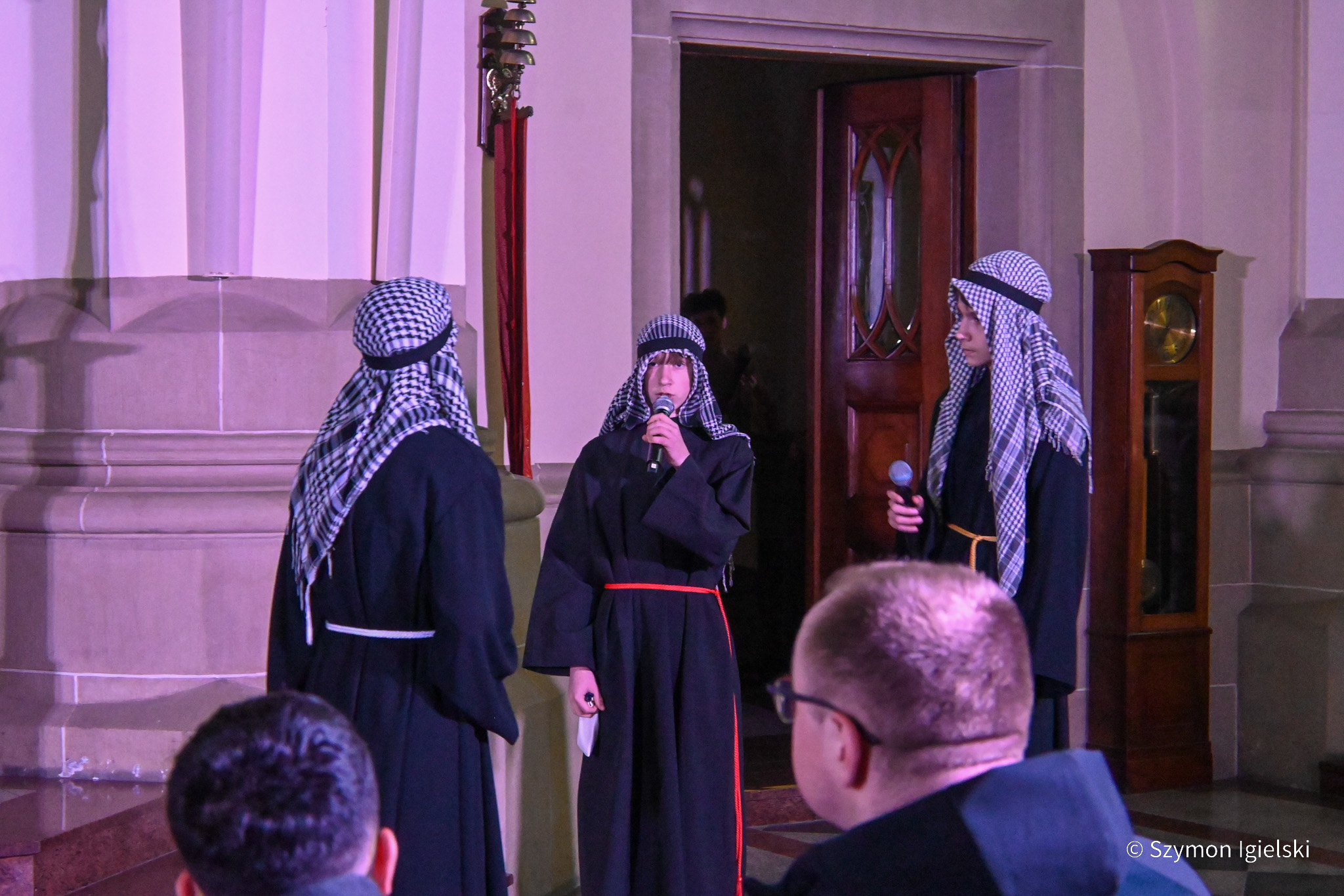 Wieczorem 12 kwietnia w niedzielę Bożego Miłosierdzia w naszej Bazylice w Grybowie odbył się piękny spektakl o Zmartwychwstaniu Pana Jezusa przygotowany przez młodzież z KSM – u i opiekunów. Na zakończenie ks. Proboszcz Prałat Ryszard pogratulował młodzieży talentu i entuzjazmu wiary i zachęcił do dalszego działania. Głos również zabrał ks. wikariusz Wiesław opiekun młodzieży w naszej parafii i koordynator przedstawienia. Młodzież wyraziła ogromną wdzięczność wszystkim przybyłym gościom a szczególnie Paniom koordynatorkom przedstawienia Barbarze Glińskiej i Bogusławie Nowak. Miedzy scenami biblijnymi pieśni śpiewał zespół: Echo Nieba.